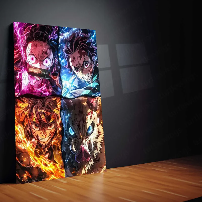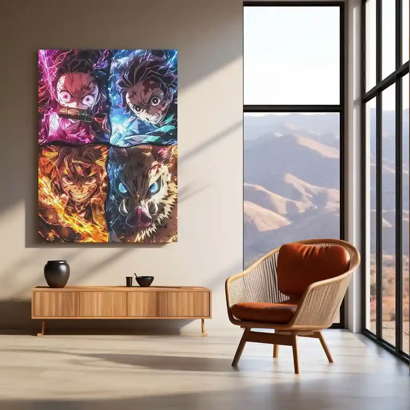 Demon Slayer Team Metal Poster ? Tanjiro, Nezuko, Zenitsu & Inosuke Wall Frame (A0 Edition)