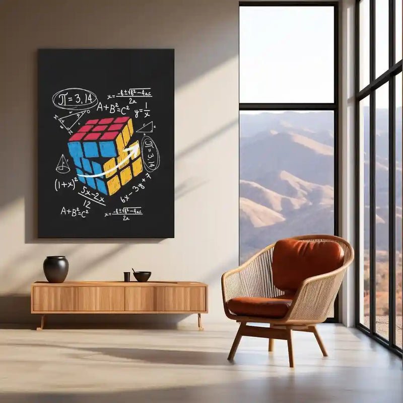 Rubiks Cube with Math Equations ? Colorful Educational Puzzle Metal Frame | Brainy Wall Art for STEM & Study Rooms